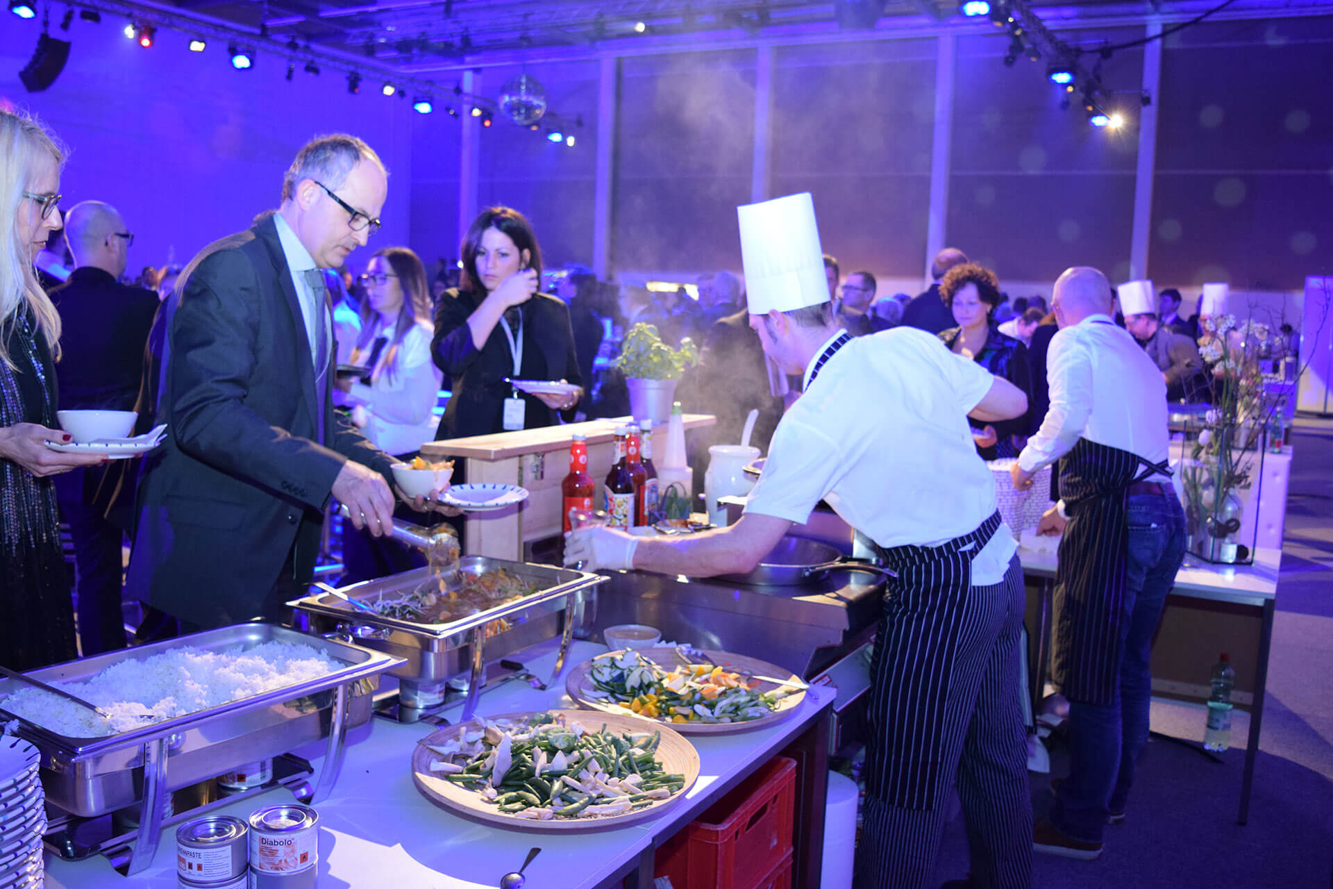 Unser Team vereint kulinarische Kreativität, Organisationstalent und Liebe zum Detail – damit Ihre Gäste begeistert sind und Ihr Messeauftritt auch am Abend glänzt.